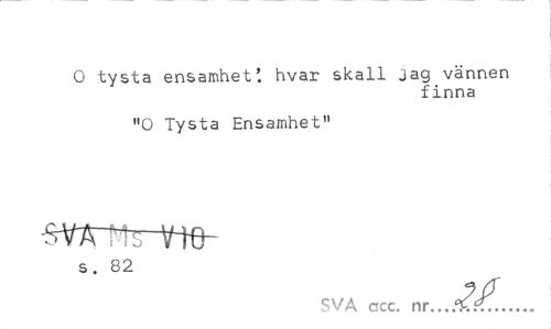 //// O tysta ensamhet' hvar skall jag vännen //// finna //// "O Tysta Ensamhet" //// swfrim~ //// s. 82 //// SVA ccc. nr. ////