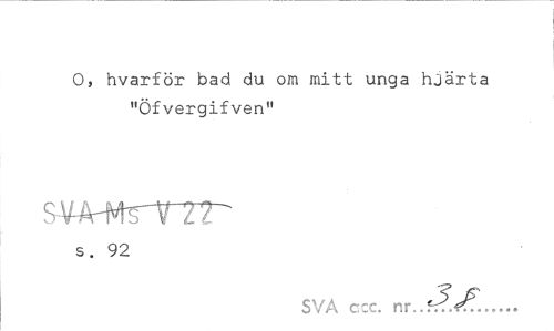 //// O, hvarför bad du om mitt unga hjärta "Öfvergifven" //// s. 92 //// SVÅ ccc. nr. ////