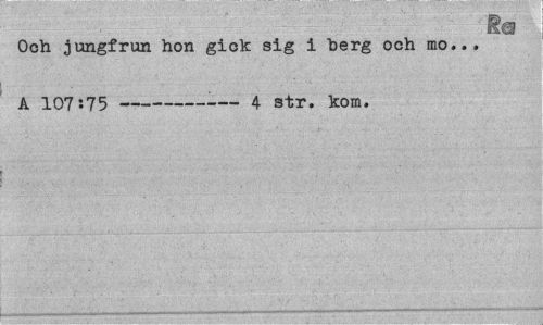 //// i® //// Och jungfrun hon gick sig i "berg och mo... A 107:75 ---4 str. kom. ////