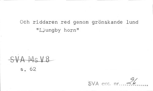 //// Och riddaren red genom grönskande lund "Ljungby horn" //// s. 62 //// SVA ccc. nr.../Kal... ////
