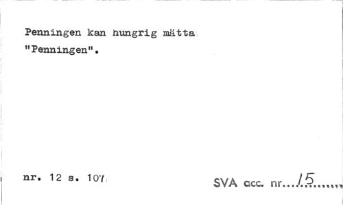 //// Penningen kan nungrig mätta "Penningen". //// 1 nr' 12 s« 107 SVA ccc. nr.../§..„„ ////