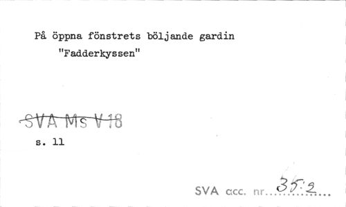 //// På öppna fönstrets böljande gardin "Fadderkyssen" //// s. 11 //// SVA ccc. nr..§<£'.2,... ////