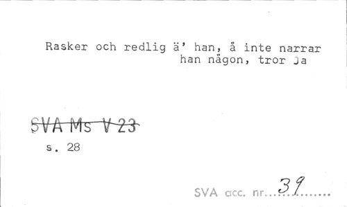 //// Rasker och redlig ä' han, å inte narrar //// han någon, tror ja //// s. 28 //// SVA acc. nr. //// 31... ////