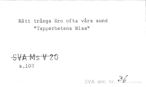 //// Rätt trånga äro ofta våra sund "Tapperhetens Wisa" //// SVAi^-^fj //// s .103 //// SVA ccc. nr.../TT-,.. ////