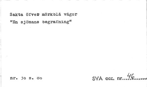 //// Sakta örvel? mörkblå vågor "En sjömans begratning" //// nr. s. öo SVA ccc. nr. ... ////