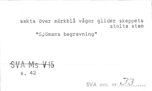 //// sakta över mörkblå vågor glider skeppets //// stolta stam //// "Sjömans begravning" //// s. 42 //// SVA ccc. nr... ////