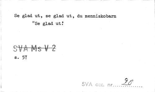 //// Se glad ut, se glad ut, du menniskobarn //// j //// "Se glad ut.' //// SVA Ms V 2 //// s. 57 //// | SVA ccc. nr___.tr^f.,.,. ////