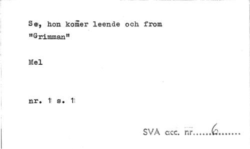 //// Se, hon komer leende och from »Grimman" //// Mel //// nr. t s. 11 //// SVA ccc. r.r...6... ////