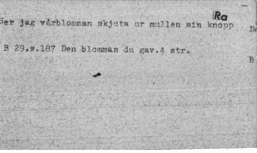 //// >er jag vårblomman skjuta ur mullen sin knopp ^ B 29*s,18? Den blomman du gav,4 str. ////