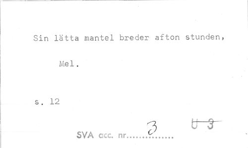 //// Sin lätta mantel breder afton stunden, Mel. //// s. 12 //// 7> ^ //// SVA ccc. nr...r... ////