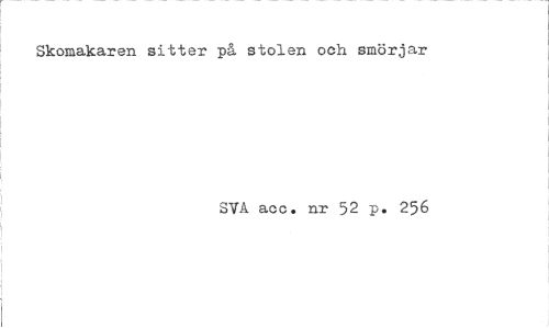 //// Skomakaren sitter på stolen och smörjar //// SVÅ acc. nr 52 p. 256 ////