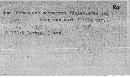 //// Ka //// 3om lärkan och sommarens fåglar,även jag i skog och mark flitig var... //// i^Ä ^ ' . ' feiå Öl . , A 372:3 .Lärkan. 1 str. . //// . 'Hr .r"-,^" , ' : , i/% •¦v'5'*- V".7,V*. 7"1 //// . ' ¦ ' . v 7 V-/ '¦•'.„¦/. .". r '.¦ . , 7/ ' 7- ,.-7- . ¦'• .. //// • ' '• .' • ""- . ' ' ¦ " ' 7 . ' 7' - . ' ¦ ¦ -'vV' f : • . '-v* : 7,.' //// . ; '-y.'1 • ,?- ¦ ;. _ . * - 7 7 ' ' '¦¦•'¦- ' " v • •.'. .7'' v' V r' . .. * i ////