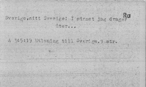 //// Ra //// Sverige,flit t Sverige! I minnet jag drager //// • £-K/* v» //// ' ; U cl * «? //// A 3.45:13 Hälsning tiU äytri ge/j str. //// UK' ' //// - I ////