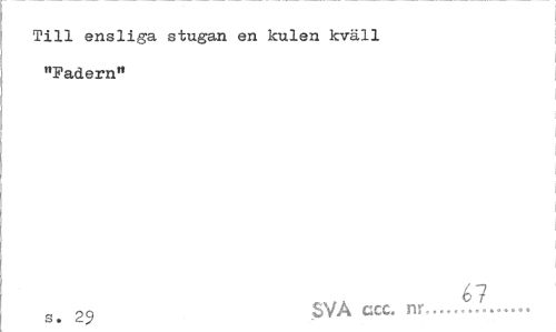 //// Till ensliga stugan en kulen kväll "Fadern" //// s> 29 SVÅ ccc. nr...^.J... ////