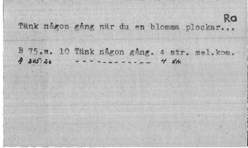 //// I Ra //// Tänk någon gång när du en blomma plockar.., //// B 75.s. 10 Tänk någon gång. 4 str. mel.kom. 4 2,o&. it. --- V y* ////