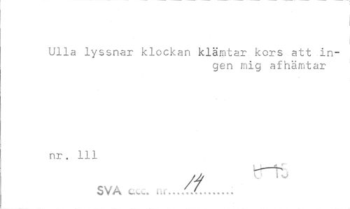 //// Ulla lyssnar klockan klämtar kors att ingen mig afhämtar //// nr. 111 //// i b //// SVA c. iu-...// ... ////