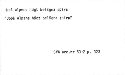 //// Uppå alpens högt belägna spira "Uppå alpens högt belägna spira" //// SVA acc.nr 53:2 p. 323 ////