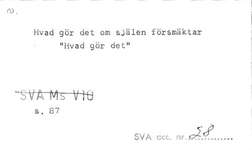 //// 0). //// Hvad gör det om själen försmäktar "Hvad gör det" //// s. 87 //// SVA ccc. nr //// dl... ////