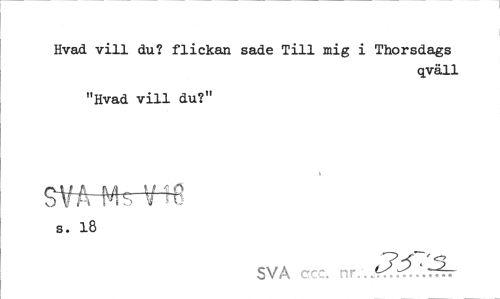 //// Hvad vill du? flickan sade Till mig i Thorsdags //// qväll //// "Hvad vill du?" s. 18 //// SVA acc. nr... ////
