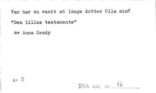 //// Var har du varit så länge dotter 011a min? "Den lillas testamente" av Anna Grady //// s • 5 //// SVA ccc. nr...?.6...,..., ////