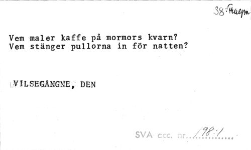 //// Vem maler kaffe på mormors kvarn? Vem stänger pullorna in för natten? //// i VILSEGÅNGNE, DEN //// SVA ccc. nr - ////