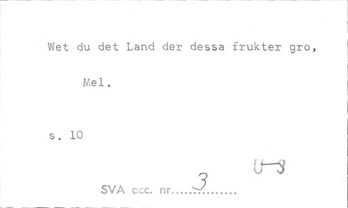 //// Wet du det Land der dessa frukter gro, Mel. //// s. 10 //// Q ^ ^ SVA ccc. nr...W... ////