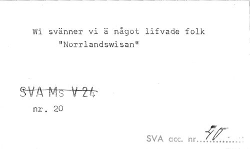 //// Wi svänner vi ä något lifvade folk "Norrlandswisan" //// SVA Ms Vtfr //// nr. 20 //// SVÅ ccc. nr. fr. ////