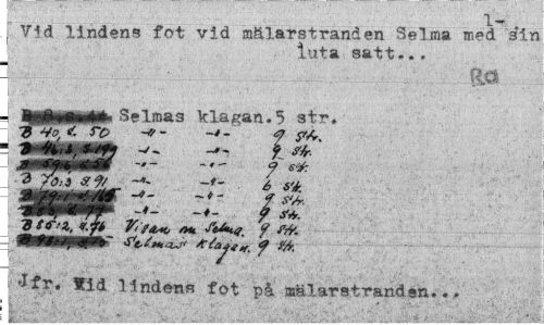 //// 1- //// I vid lindens fot vid mälarstranden Selma med sin I luta satt... //// Iv^Myg^^g-M m i | //// I | 1 VJ1 - v f -1 " ' " ' "c l ' ' w |J < //// - MMHMft*1 Selmas klagan.5 str. //// 4o <. ro - f //// | J^k^^fcgy £ //// b ^T^fTjf / 6^ //// i f Sfr. //// \ 'Ifr, Hd lindens fot på mälarstranden... ////