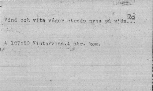 //// Ra //// Vind och vita vågor stredo nyss på siön... //// k 107s60 Vintervisa.4 str. kom. //// Jr" //// i ////