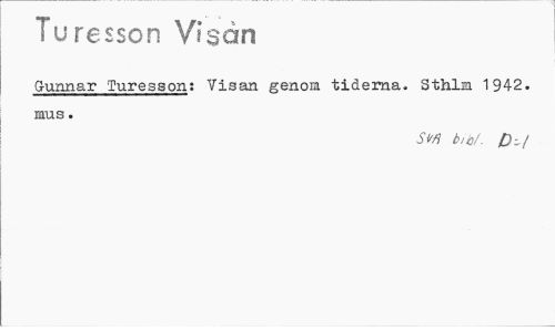 //// Turesson Visan //// Gunnar Turesson: Visan genora tiderna. Sthlm 1942. //// raus. //// Sm b/t,/. 0-! ////