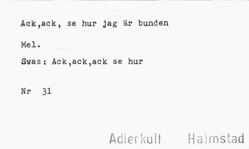 //// Ack,ack, se hur jag är bunden Mel. //// Svas : Ack,ack,ack se hur Nr 31 //// Adierkui! Halmstad ////