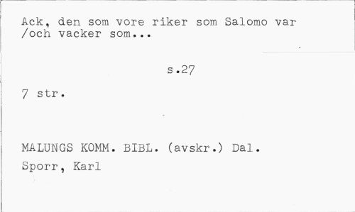 //// Ack, den som vore riker som Salomo var /och vacker som... //// s .27 //// 7 str. //// MALUNGS KOMM. BIBL. (avskr.) Dal. Sporr, Karl ////