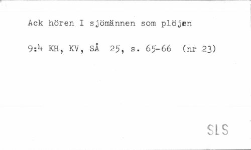 //// Ack hören I sjömännen som plöjcn 9zk KH, KV, SÅ 25, s. 65-66 (nr 23) //// SLS ////