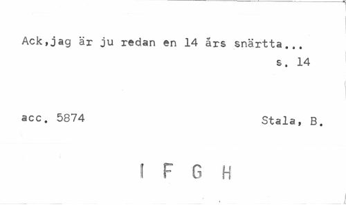 //// Ack,jag är ju redan en 14 års snärtta... //// s. 14 //// acc. 5874 Stala, B. //// I F G H ////