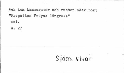 //// Ack kom kammerater och rusten eder fort "Fregatten Fröyas långresa" mel. s. 27 //// Sjtim, visor ////