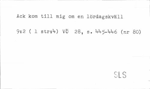 //// Ack kom till mig om en lördagskväll 9:2 ( 1 strs^-) VÖ 28, s. (nr 80) //// SLS ////