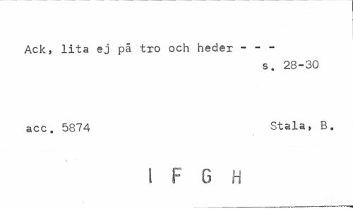 //// Ack, lita ej på tro och heder - - - //// s. 28-30 //// acc. 5874 Stala, B. //// 1 F 6 H ////