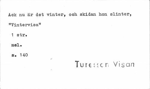 //// Ack nu är det vinter, och skidan hon slinter, "Vintervisa" 1 str. mel. s. 140 //// Turesscn Visan ////