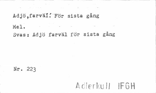 //// Adjö,farväl.' För sista gång Mel. //// Svas: Adjö farväl för sista gång Nr. 223 //// Adlerkuli SF G H ////