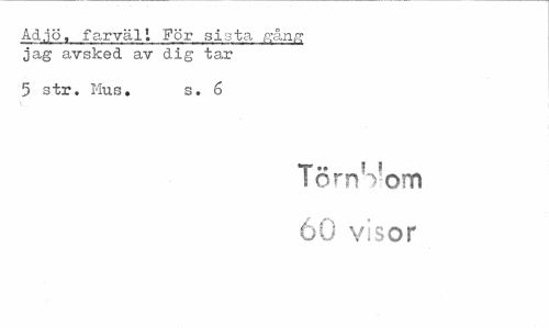 //// Ad.jö, farväll För si-ita jag avsked av dig tar //// 5 str. Mus. s. 6 //// TömS!om 60 visor ////