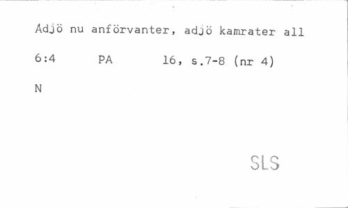 //// Adj ö nu anförvanter, adjö kamrater all 6=4 PA 16, s.7-8 (nr 4) //// N //// SLS ////