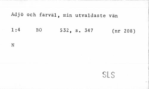 //// Adjö och farval, min utvaldaste vän 1:4 BO 532, s. 347 (nr 208) //// N //// SLS ////