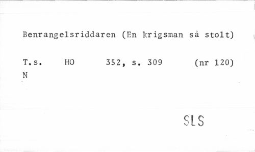 //// Benrangelsriddaren (En krigsman så stolt) //// T.s. HO 352, s. 309 (nr 120) //// N //// SLS ////