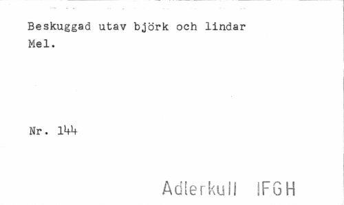 //// Beskuggad utav björk och lindar //// Mel. //// Nr. lbb //// Adlerkull IFGH ////