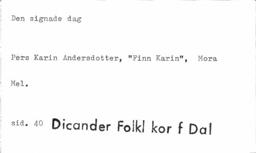 //// ¦Den signade dag //// Pers Karin Andersdotter, "Finn Karin", Mora Mel. //// sid. 40 Dic-arider Folk! kor f Dal ////