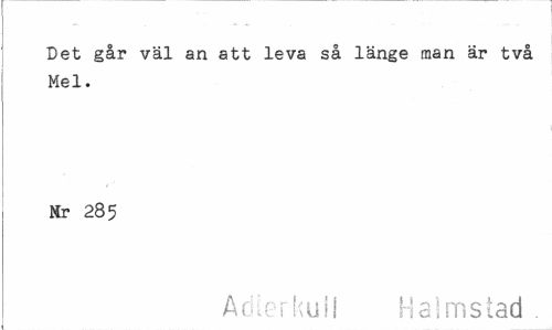 //// Det går väl an att leva så länge man är två Mel. //// Mr 285 //// Adierkull Halmstad . ////