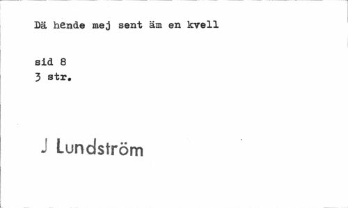 //// Dä hende mej sent äm en kvell //// sid 8 3 str. //// J Lundström ////