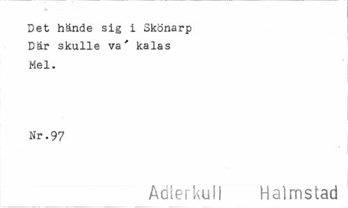 //// Det hände sig i Skönarp Där skulle va' kalas Mel. //// Nr. 97 //// Adierkull Halmstad ////