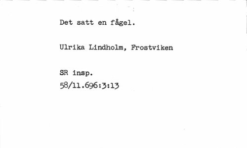 //// Det satt en fågel. Ulrika Lindholm, Frostviken SR insp. //// 58/11.696:3:15 ////
