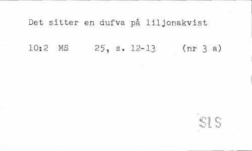 //// Det sitter en dufva på liljonakvist 10:2 MS 25, s. 12-13 (nr 3 a) //// SIS ////